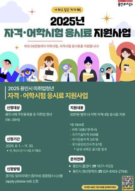 시 관계자는 “경제적 부담으로 자격·어학시험 준비에 어려움을 겪는 청년들이 이번 지원 사업을 통해 보다 적극적으로 구직활동에 나설 수 있기를 응원한다”고 말했다.