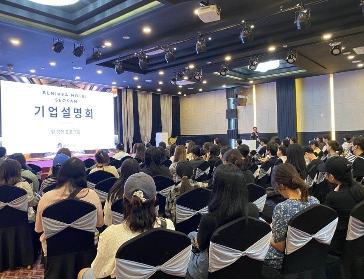 참가 청년들은 베니키아 호텔의 내부 시설 견학과 기업 및 직무 소개, 총지배인과의 질의응답 시간을 통해 현장 실무자의 생생한 이야기를 듣고, 직무 흐름과 기업 문화를 직접 체험했다.