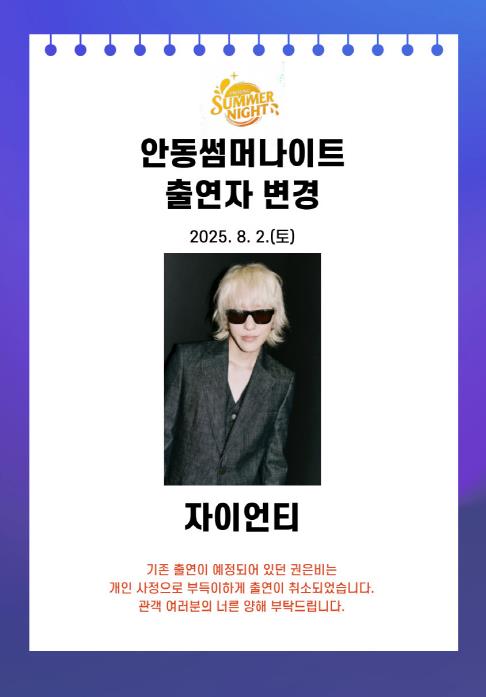 안동시 관계자는 “출연진에 일부 변동이 있었지만, 축제의 열기와 감동을 이어갈 수 있도록 준비에 만전을 기하고 있다”며 “관람객들이 안전하고 즐겁게 공연을 즐길 수 있도록 최선을 다하겠다”고 전했다.