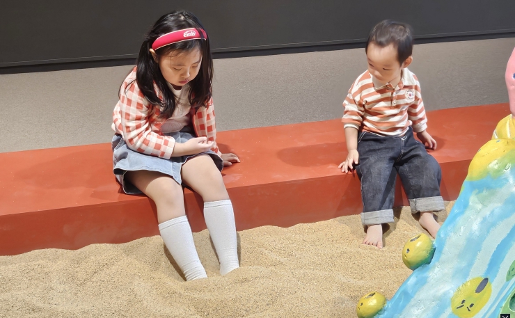특히 전시장 한가운데 마련된 ‘모래 놀이터’가 어린이들에게 폭발적인 인기를 끌고 있다.