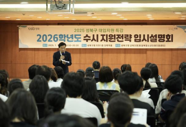 이날 특강에는 약 150명의 성북구민이 참석했다. 성북구는 앞서 6월에 진학박람회와 ‘입학사정관과 함께하는 학생부종합전형의 이해’ 진학아카데미를 진행했으며, 오는 8월 25일 2026학년도 파이널 수시지원전략 입시설명회와 10월 28일 고입설명회 등 다양한 진학 프로그램을 준비 중이다.
