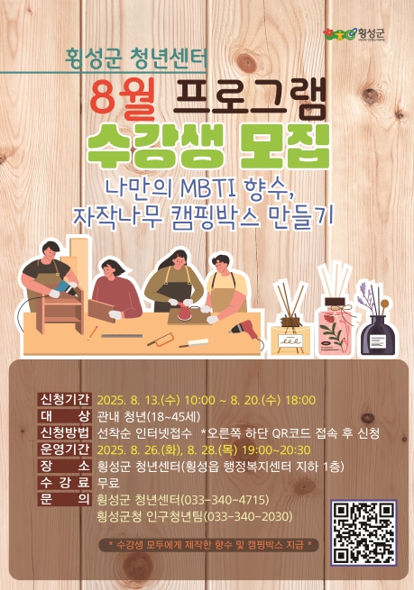 교육내용은 ▲나만의 MBTI 향수 만들기 ▲자작나무 캠핑박스 제작 등의 프로그램으로, 청년들이 직접 제작하여 실생활에서 활용할 수 있도록 구성됐다.