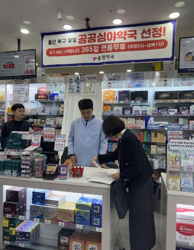 운영에 앞서 울산시와 북구보건소는 지난 2월 24일 송정약국을 방문해 365일 연중 무휴 운영을 위한 인력 활용 방안, 공공심야약국 누리집 관리, 주민 복약 상담 등을 점검했다.