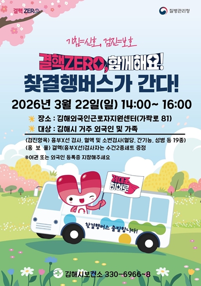 이번 무료 결핵검진은 예약 없이 현장 참여할 수 있으며 문의는 김해시보건소로 하면 된다.