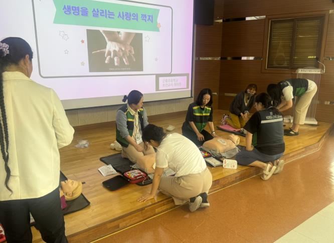특히, 현장에서 자동심장충격기(AED)를 직접 다뤄보는 실습으로 실전 상황에 대비한 훈련 효과를 높였다.