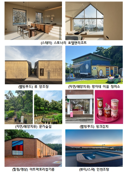 올해 신규 웰니스 관광지로는 △류양조장(강화, 웰빙푸드) △스토너리 호텔앤리조트(강화, 스테이) △랑이네 이음 정미소(강화, 자연·해양치유) △㈜농업회사법인 문가숲길(남동구, 자연·해양치유) △아트팩토리참기름 강화(강화, 힐링·명상) 등 5곳이 선정됐다.