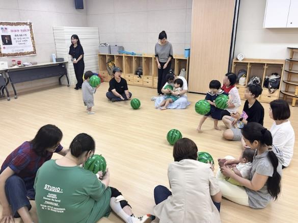 프로그램에서는 아동의 오감을 자극하는 놀이인 ▲클래식 감상 및 실로폰 연주 ▲수박 탱탱볼 활용 신체활동 ▲수박화채 만들기 퍼포먼스 ▲바퀴주제 그림책 읽기 ▲스핀어게인, 공, 바퀴 활용 놀이 등 감각과 인지발달을 높이고, 정서적 교감을 확대하기 위한 시간으로 진행됐다.