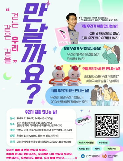 박미애 인천시 건강증진과장은 “초로기 치매를 겪는 부모를 돌보는 청년 보호자들은 쉽게 사회적 고립에 놓일 수 있다”며, “이번 모임이 또래 간 공감과 지지를 통해 건강한 관계망을 형성하는 계기가 되기를 바란다. 인천시는 앞으로도 지속 가능한 지원 기반 마련에 최선을 다하겠다”고 전했다.