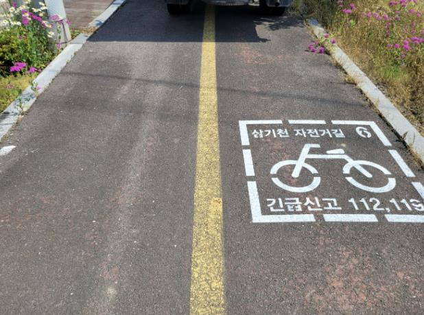 군은 최근 보강천 산책길을 비롯해 오천 및 삼기천 자전거도로 등 총연장 약 23km 구간에 걸쳐 위치정보를 담은 노면표시 작업을 마쳤다.