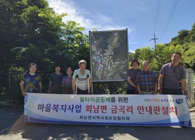 이번 사업은 회남면 금곡리를 중심으로 한 마을복지 실천 프로젝트로 주민과 방문객의 편의성 향상과 마을 안전망 강화를 동시에 도모하기 위해 마을안내도 설치가 추진됐으며 협의체 위원과 금곡리 이장, 주민 6명으로 구성된 마을복지위원회가 주축이 되어 공동체 기반 조성을 이끌었다.