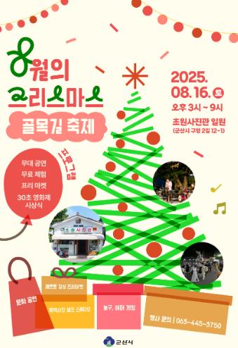 군산시 관계자는 “‘8월의 크리스마스 골목길 축제’는 지역 주민과 함께하는 축제라는 점에서 의미가 깊다.”라며, ‘8월의 크리스마스’ 영화처럼 축제를 찾는 분들이 모두 소중한 추억을 떠올리는 낭만 가득한 시간이 되시길 바란다.”라고 전했다.