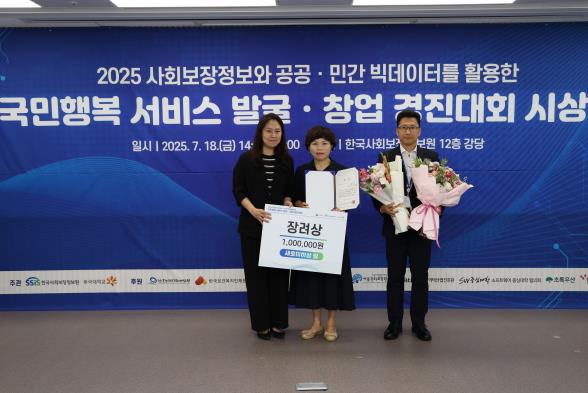‘2025 국민행복 서비스 발굴·창업 경진대회’는 보건복지부가 주최한 전국 단위 대회로, 공공데이터와 AI 기술을 활용해 창의적이고 실현 가능한 사회복지 창업 아이디어 발굴을 목표로 한다.