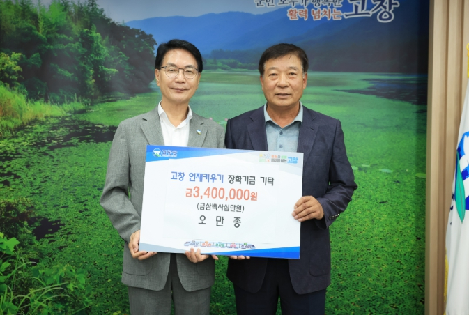 오만종 회장은 “고창군 지역인재들이 더 나은 환경에서 공부에만 전념할 수 있도록 작은 마음이라도 함께 할 수 있어 기쁘다”며 “앞으로도 있는 자리에서 최선을 다하면서 지역사회에 보탬이 될 수 있도록 노력하겠다”고 소감을 밝혔다.