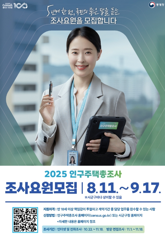 조사관리자·조사지원담당자 모집 신청 기간은 오는 25일까지며, 조사원은 오는 9월 17일까지다.