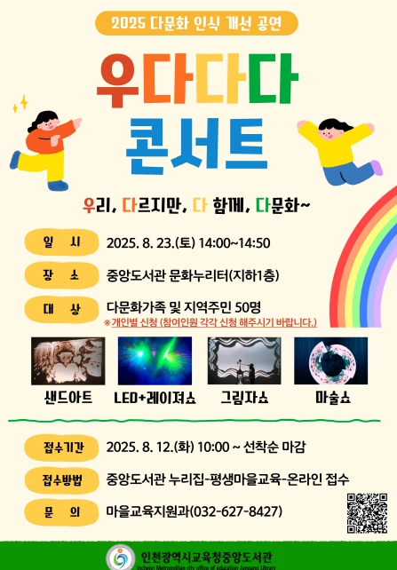 참여 신청은 8월 13일 오전 10시부터 주안도서관 누리집에서 가능하며, 자세한 사항은 종합자료실로 문의하면 된다.