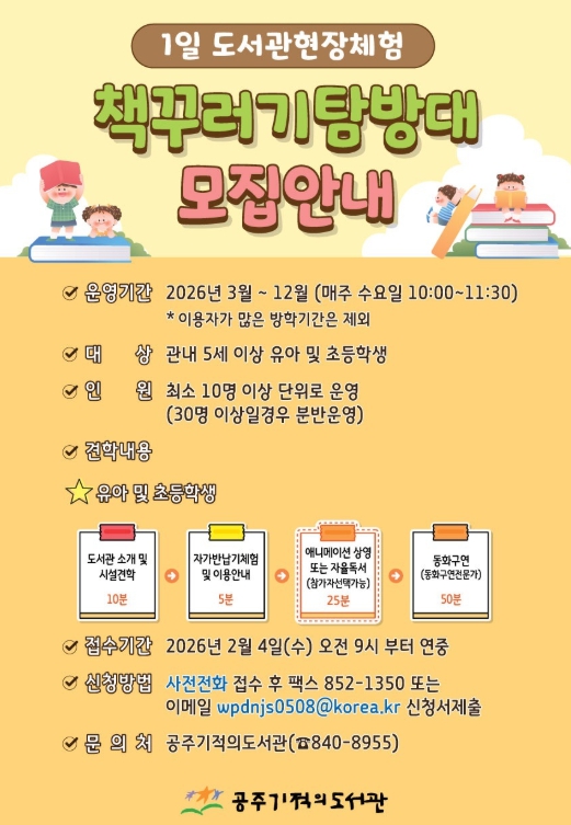 프로그램은 방학 기간을 제외하고 매주 수요일 오전 10시부터 90분간 공주기적의도서관에서 진행된다.