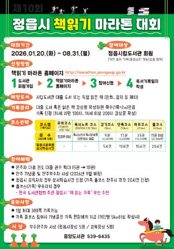 도서관 관계자는 “이번 대회를 통해 많은 시민이 완주의 기쁨을 맛보고, 독서를 일상의 즐거움으로 삼는 계기가 되길 바란다”고 했다.