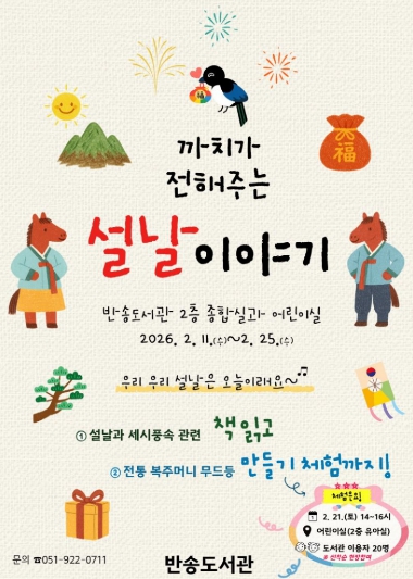 박미양 반송도서관장은“이번 프로그램을 통해 어린이와 가족이 함께 전통 명절의 의미를 되새기고, 가족과 함께 책과 체험이 어우러진 독서문화 활동을 즐기는 계기가 되길 바란다”라고 말했다.