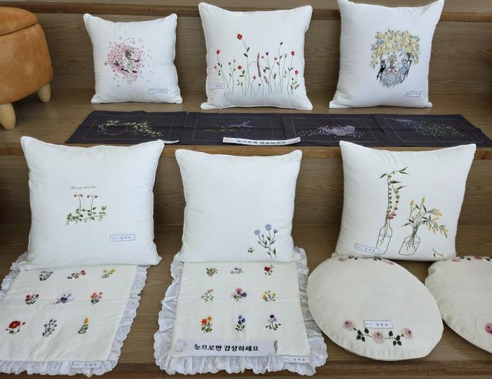 이번 전시회는 17명의 지역 예술인이 참여하여 환경보호와 탄소중립을 주제로 일상에서 버려지는 재활용 소재를 활용한 프랑스 자수 작품을 선보인다.