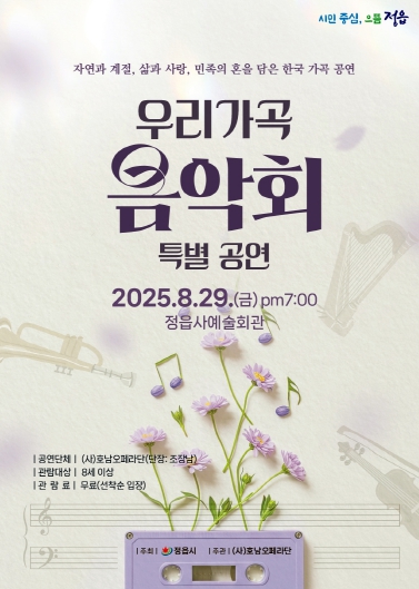 이학수 시장은 “지친 일상 속에서 시민들이 예술로 힐링하고 감동을 느낄 수 있는 기회가 될 것”이라며 “앞으로도 다양한 문화 공연을 기획해 시민의 문화적 갈증을 해소하고 삶의 질을 높이겠다”고 말했다.