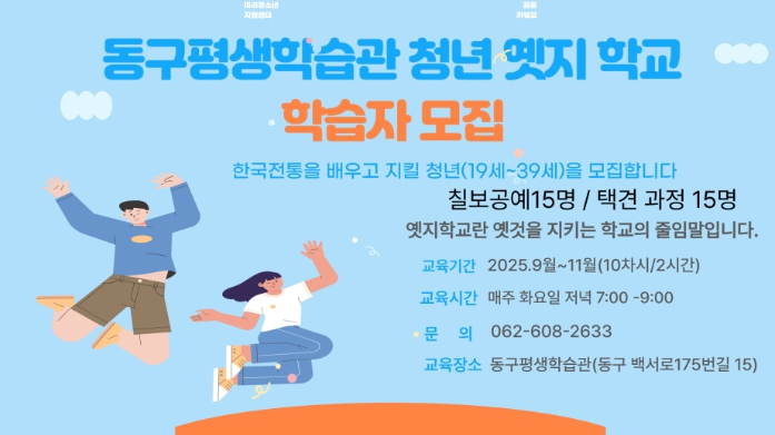 모집 대상은 19~39세 동구에 주소지를 둔 청년으로 참가비는 무료이다. 신청은 이달 29일까지 두드림 앱과 동구청 누리집에서 하면 된다.