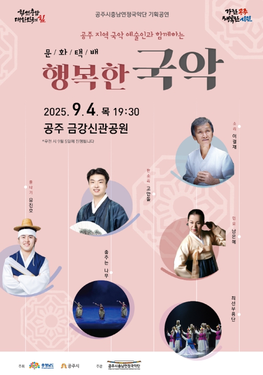 이번 공연은 시민들에게 한층 가까이 다가가는 국악 무대를 마련하기 위해 많은 시민이 찾는 도심 속 대표 휴식처인 금강신관공원에서 열린다.