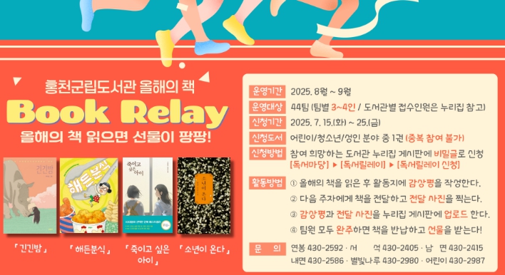 오는 8월부터 9월까지 2개월간 진행되는 이 독서릴레이는 한 팀에서 시작해 다음 사람으로 책을 전달하면서 완주를 목표로 하는 이색적인 독서 운동이다.