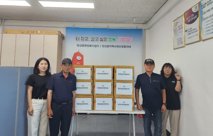 이번 기탁물품은 망상동통장협의회 위원 15명이 십시일반 모은 회비로 준비한 것으로, 폭염으로 인해 입맛이 없는 분들이 간편하게 드실 수 있도록 라면을 준비했으며, 지역내 복지 사각지대 대상자와 홀몸어르신, 장애인 등에게 우선 전달됬다.