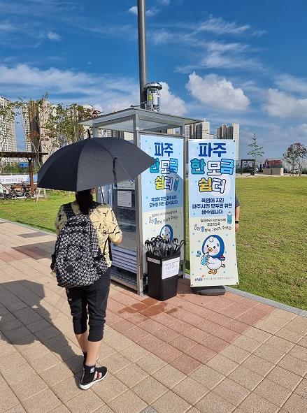 시민 중심의 복지 실현을 위한 나눔 프로젝트의 일환으로 지난 6일 지티엑스(GTX) 운정중앙역 출입구(파주 한모금 쉼터 옆)에 무료 양우산 나눔함을 설치해, 소나기를 대비하고 한낮 더위에 자외선을 차단해 더위를 식히고자 함이다.