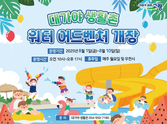 고령군(군수 이남철)은 “올해 더욱 특별하고 다채로운 프로그램으로 준비했다”며 “무더위와 일상의 스트레스를 내려놓고 대가야생활촌에서 건강하고 즐거운 여름날의 추억을 만들어 가시길 바란다”고 전했다.