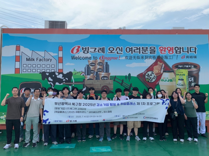 1회차(7.4.)에서는 에듀스퀘어에서 오리엔테이션과 ‘모티베이션핏’ 업스킬링 취업클래스를 실시했으며, 이후 ㈜빙그레 김해공장을 방문해 실제 산업 현장을 체험했다.