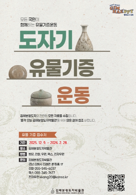 박물관 관계자는 “이번 기증 운동은 지난 2021년에 이어 두 번째로 추진하는 사업으로, 김해도자와 관련된 유물을 폭넓게 확보하는 데 있어 주민들의 자발적 참여가 큰 힘이 된다”며 “김해시민뿐만 아니라 부산·울산·경남 지역의 많은 관심과 참여를 기다린다”고 말했다.