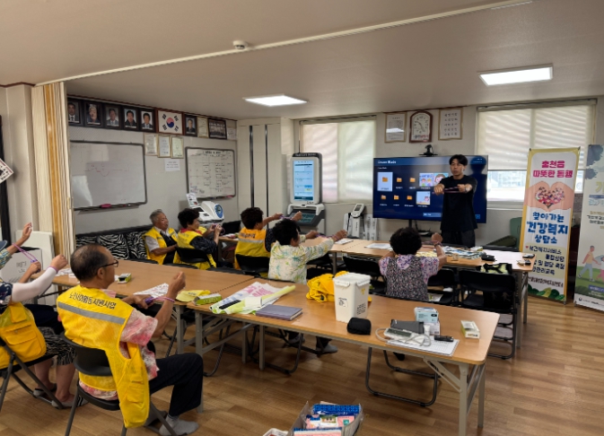 근력 유지에 중요한 단백질 섭취를 강조한 영양교육을 진행하고, 실내에서 쉽게 따라 할 수 있는 건강체조를 함께 실시했다.
