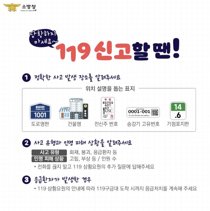 천안서북소방서는 시민들에게 올바른 119신고 방법으로 ▲발생 장소(주소) 정확히 알리기 ▲무슨 일이 일어났는지 구체적으로 설명하기 ▲환자 상태나 화재 규모 등 상황 전달하기 ▲신고 후 안내에 따라 침착하게 대응하기 등을 강조하고 있다.