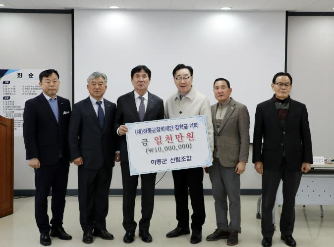 (재)하동군장학재단은 지난 13일 하동군산림조합이 2026년 정기총회 자리를 통해 청소년들의 꿈과 희망을 응원하는 장학기금 1천만 원을 전달했다고 밝혔다.