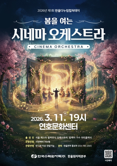 이세용 본부장은 “오케스트라 연주를 보다 친숙하게 느낄 수 있도록 영화 음악 테마로 선택했으며, 점차 클래식에 자연스럽게 적응하는 계기가 되기를 바란다”라며, “앞으로도 일상에 자연스럽게 스며드는 문화 프로그램을 선보여 울진의 사계절을 더욱 풍성하게 만들어가겠다”라고 말했다.