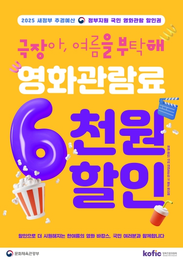 이번 사업은 침체된 영화 산업에 활력을 불어넣고 국민의 문화 여가 활동을 확대하기 위해 전국 영화관을 대상으로 총 450만 장의 6,000원 영화 할인권을 제공하는 정부 지원사업이다.