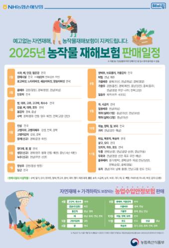 유덕규 전남도 식량원예과장은 “예측이 어려운 자연재해와 수입 감소 위험에 선제적으로 대비하기 위해 농작물 재해보험과 수입안정보험 가입이 필요하다”며 “농업인의 적극적인 가입을 통해 농가소득 안정에 도움이 되길 바란다”고 말했다.