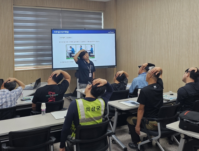 대한산업보건협회 김창윤 원장(의성군 산업보건의)은 ▲개인별 신체 컨디션 점검 ▲통증 원인 분석 ▲작업환경·생활습관 개선 방안 제시 ▲예방 체조·스트레칭 지도 ▲질의응답 등 실질적인 건강관리 방법을 안내했다.