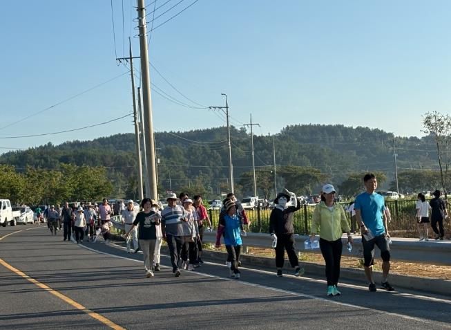 코스는 서포생활체육공원에서 출발해 구평 방조제와 신소 마을 농로를 걷는 약 3km의 구간으로 구성됐으며, 예년과 달리 올해는 공원 내 조성된 산책로 구간이 추가되어 보다 풍성하게 운영됐다.