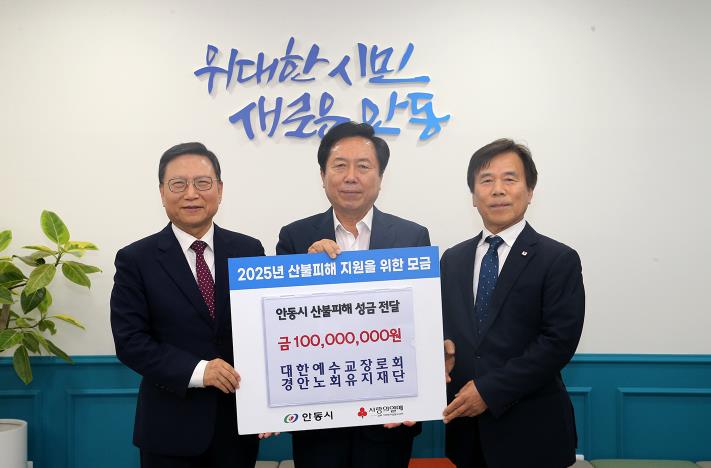 권기창 안동시장은 “지역의 어려움에 함께해주신 대한예수교장로회경안노회유지재단에 깊이 감사드린다”며 “기탁해주신 성금은 이재민의 빠른 회복과 지역 복구에 소중히 쓰이도록 하겠다”고 전했다.