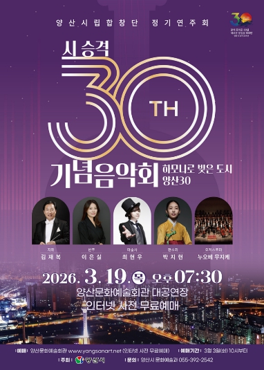 양산시 관계자는 “시 승격 30주년을 맞아 시민들과 함께 걸어온 시간을 기념하고, 아름다운 하모니를 통해 도시의 자부심을 나누고자 이번 음악회를 마련했다”며 “화합의 메시지를 담은 이번 공연이 양산 시민 모두에게 감동과 희망의 시간이 되길 바란다”고 밝혔다.