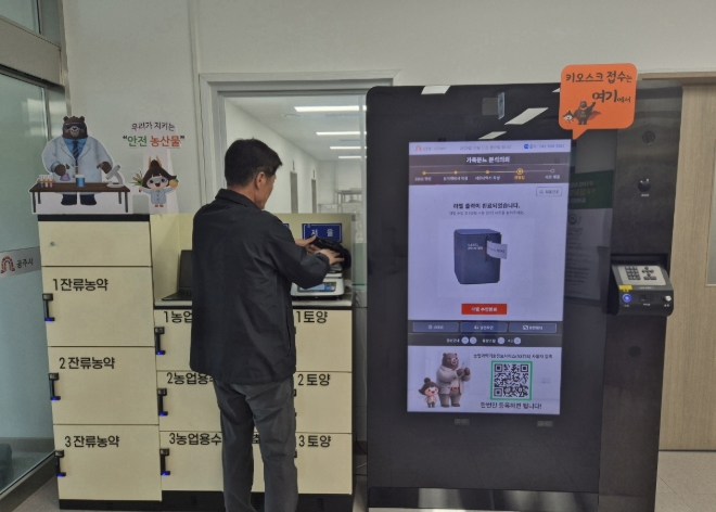 그동안 농업환경연구관은 1층 종합검정실(토양·가축분뇨·농업용수)과 2층 농산물안전분석실(농산물 잔류농약)에서 시료를 각각 접수해 왔으나, 이번에 통합 접수 시스템을 도입해 일괄 접수가 가능한 키오스크를 설치했다.