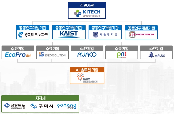 총 사업비 43억 원(국비 21억 포함)으로 추진되는 사업으로 한국생산기술연구원, 경북테크노파크 등 연구기관과 포스텍, 서울대, 카이스트 등 학계, 구미시 소재 피엔티·아이에스에코솔루션·아바코 등 지역 주력기업이 참여하는 앵커 컨소시엄이 함께한다. 시는 이 컨소시엄을 중심으로 표준 AI 무인화·무재해 솔루션 설계, 현장 실증 및 적용, 지속 가능한 산업 혁신 로드맵을 구축할 계획이다.