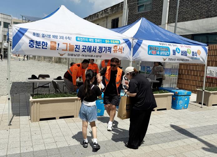 대원들은 무더위 속 거리를 오가는 시민들에게 얼음 생수를 건네고, 온열질환 예방을 위한 행동 수칙을 알리며 건강 피해를 막기 위한 실천에 나섰다.