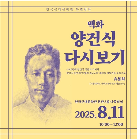 이번 강연을 통해 잊힌 작가 양건식을 재조명하고 이를 통해 한국 근대문학을 바라보는 새로운 시각을 얻을 수 있을 것으로 전망된다.