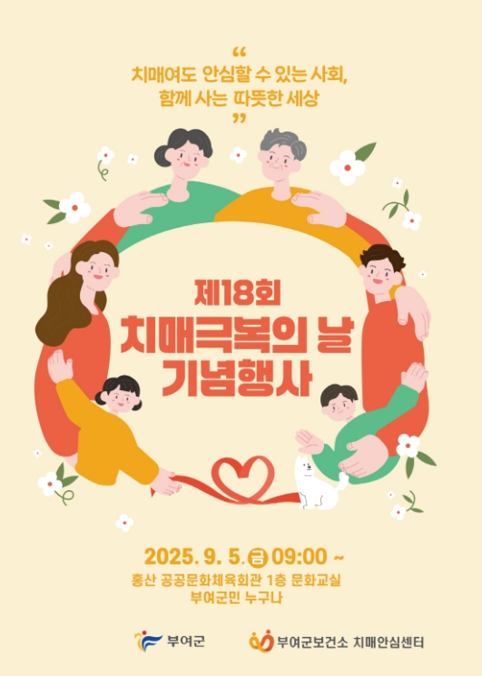 기념식은 오전 9시 홍산 공공문화체육회관 1층 문화교실에서 ▲치매관리사업 유공자 표창 ▲치매안심센터 홍보영상 상영 ▲치매환자 작품 전시 등 지역사회의 치매 극복 노력을 공유한다.