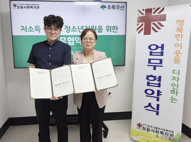 양 기관은 지난 25일 정읍사회복지관에서 업무협약(MOU)을 체결하고, 지역 내 경제‧사회적 어려움을 겪고 있는 아동·청소년을 위한 공동사업을 추진하기로 뜻을 모았다.