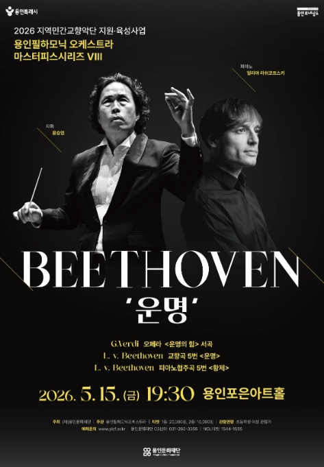 피날레는 섬세하고 정교한 곡 해석으로 호평받는 지휘자 윤승업과 용인 지역 클래식 음악의 매개 역할을 해온 용인필하모닉오케스트라가 호흡을 맞춰 베토벤 교향곡 제5번 ‘운명’을 연주하며 관객들에게 묵직한 감동을 전할 예정이다.