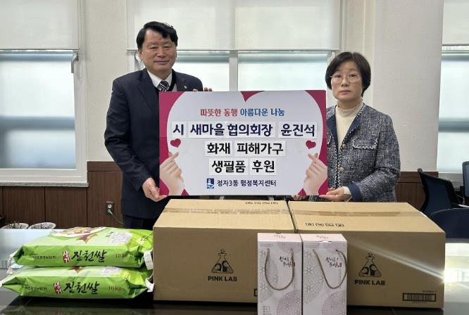 윤진석 수원시 새마을협의회장은 “예기치 못한 화재로 어려움을 겪고 계신 이웃께 조금이나마 힘이 되고자 후원품을 준비했다”며 “앞으로도 지역사회 곳곳의 도움이 필요한 이웃을 살피고 따뜻한 나눔을 실천해 나가겠다”고 말했다.